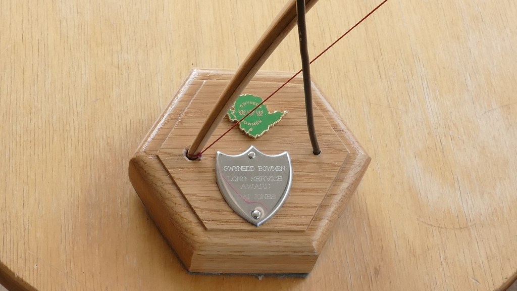 Yesterday we met in the showground, our new venue, where we awarded Dai Jones an Honorary Membership of Gwynedd Bowman and also gave him some bits to remember us by, Dai will be missed greatly. Good luck to him and his Family in South Wales.