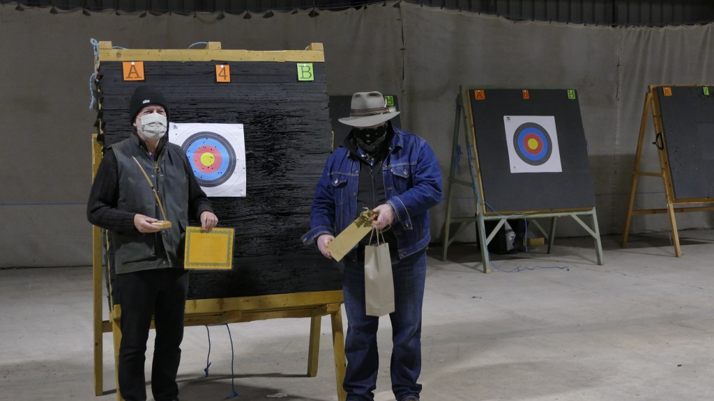 Paul Mullins and Derek Perkins come away with awards from North Wales W25. Paul used 2 different flatbows but Derek stuck to his trusty longbow.